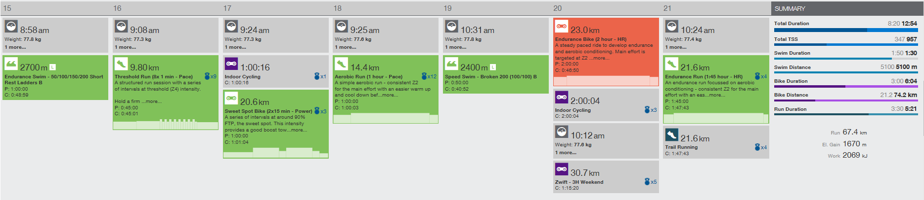 This week, I am mostly happy that the last week is behind me. Last week included quite a few brutal swims, which pushed forward my boundaries of uneasiness, a 3 hour indoors session and a long run outside with weather bouncing from -12 to -10 degrees in Celsius (10.4 – 14 Fahrenheit). In total, I had over 10 hours of planned training sessions, which most likely have gone overboard – as I had done 5 minutes cycling-wake-up and 15 minute yoga routine almost every morning. All this came to a conclusion, that this week’s 8 hours of training felt like a vacation (EDIT: here’s to a hope that my coach will not read this 🙂 ). This week was definitely within my comfort zone for every workout I had an I think which is yet to come.